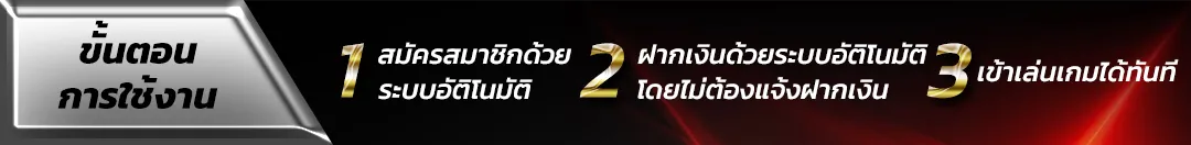 ตอบ : - ใช้ระบบอัตโนมัติทำรายการภายใน 30 วินาที - ฝากขั้นต่ำ 100 บาท ถอนขั้นต่ำ 300 บาท - รองรับทุกธนาคารหลักในไทย